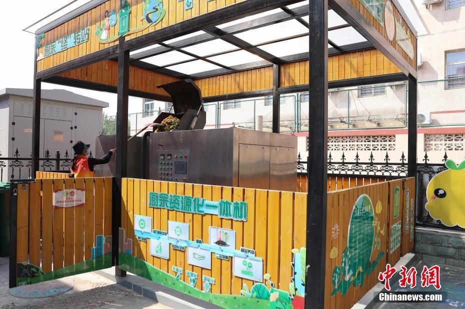 资料图:垃圾分类志愿者将厨余垃圾倒入厨余资源化一体机内。厨余垃圾经分解、压缩、发酵后可变为肥料。中新社记者 蒋启明 摄